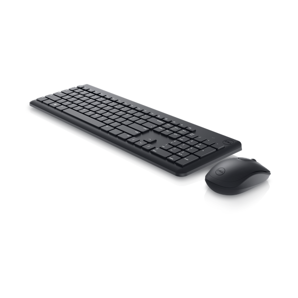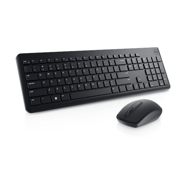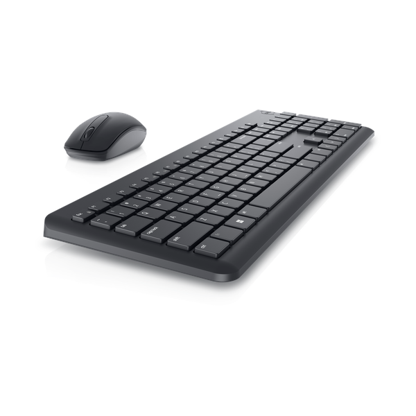 A reliable wireless productivity set from Dell: a full-size keyboard supporting English/Arabic layout with quiet plunger-style keys, paired with a 1000 DPI optical mouse. Both connect via a 2.4GHz USB nano-receiver for seamless wireless performance.