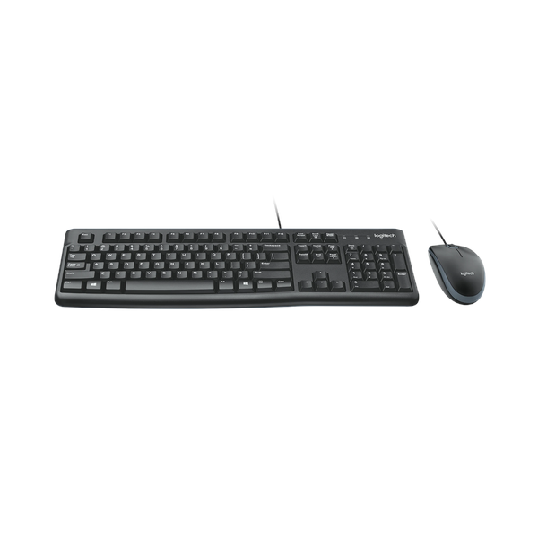 The Logitech MK120 wired combo offers a full‑size keyboard with English/Arabic layout, spill‑resistant build and deep‑profile keys paired with an ambidextrous 1,000 DPI optical mouse. A dependable plug‑and‑play set for home or office use.