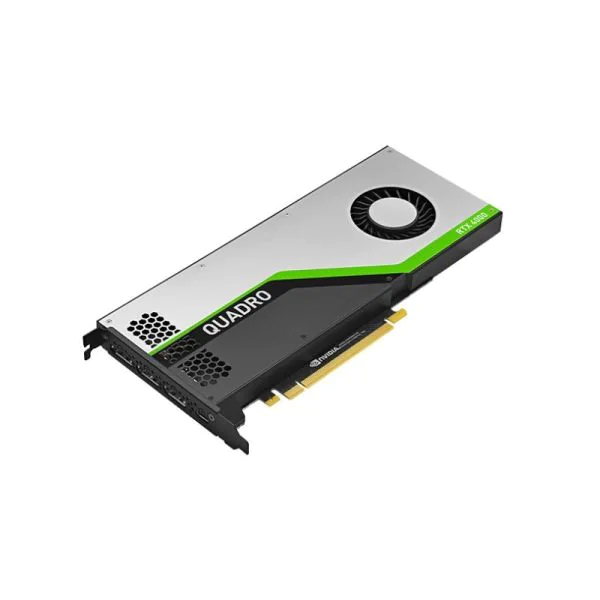 Slim 4.4″ × 9.5″ graphics card with 8 GB GDDR6 ECC memory, 2 304 CUDA cores, 288 Tensor cores, 36 RT cores, PCIe 3.0 x16 interface, and four-display support (including DisplayPort and VirtualLink). Consumes up to 160 W for high-efficiency, high-end visual and compute workflows.
